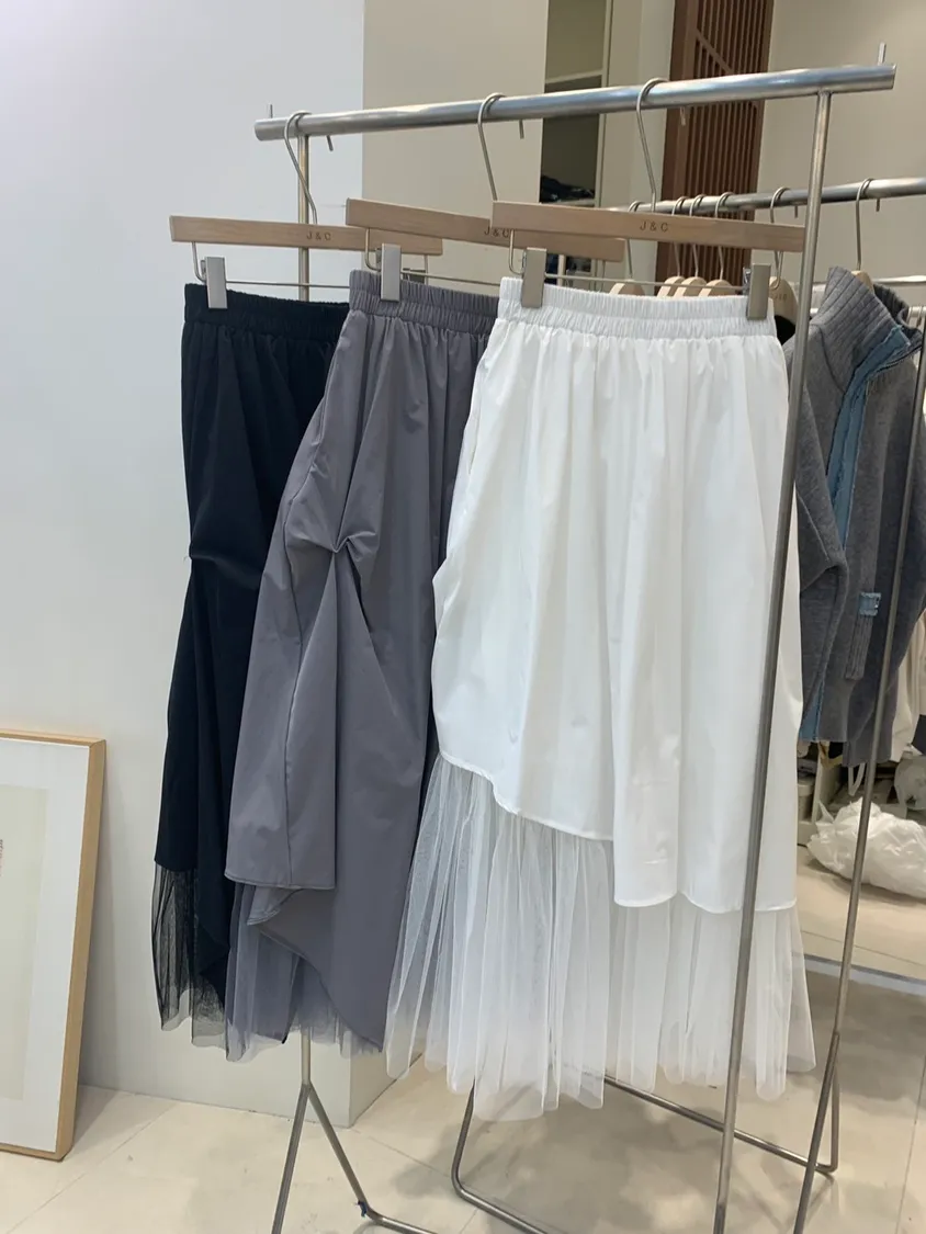 不規則抓皺拼接紗裙