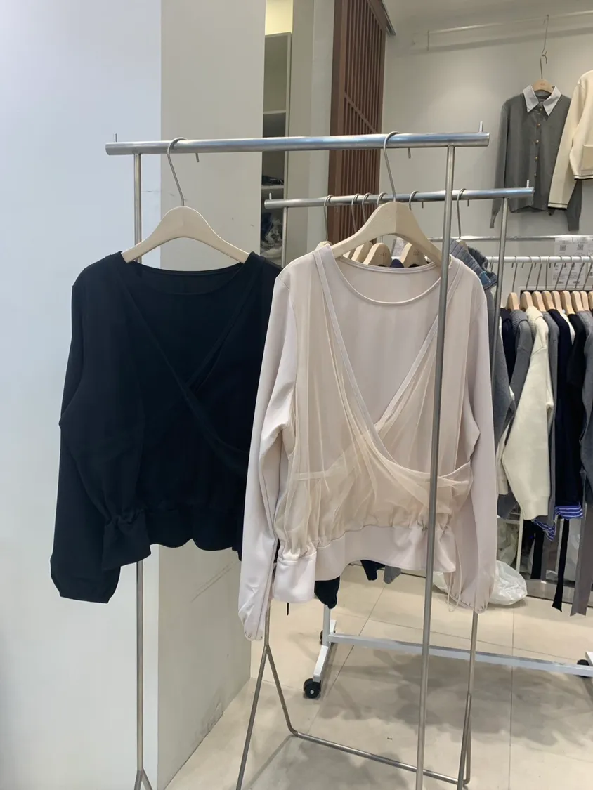 設計款交叉網紗拼接上衣