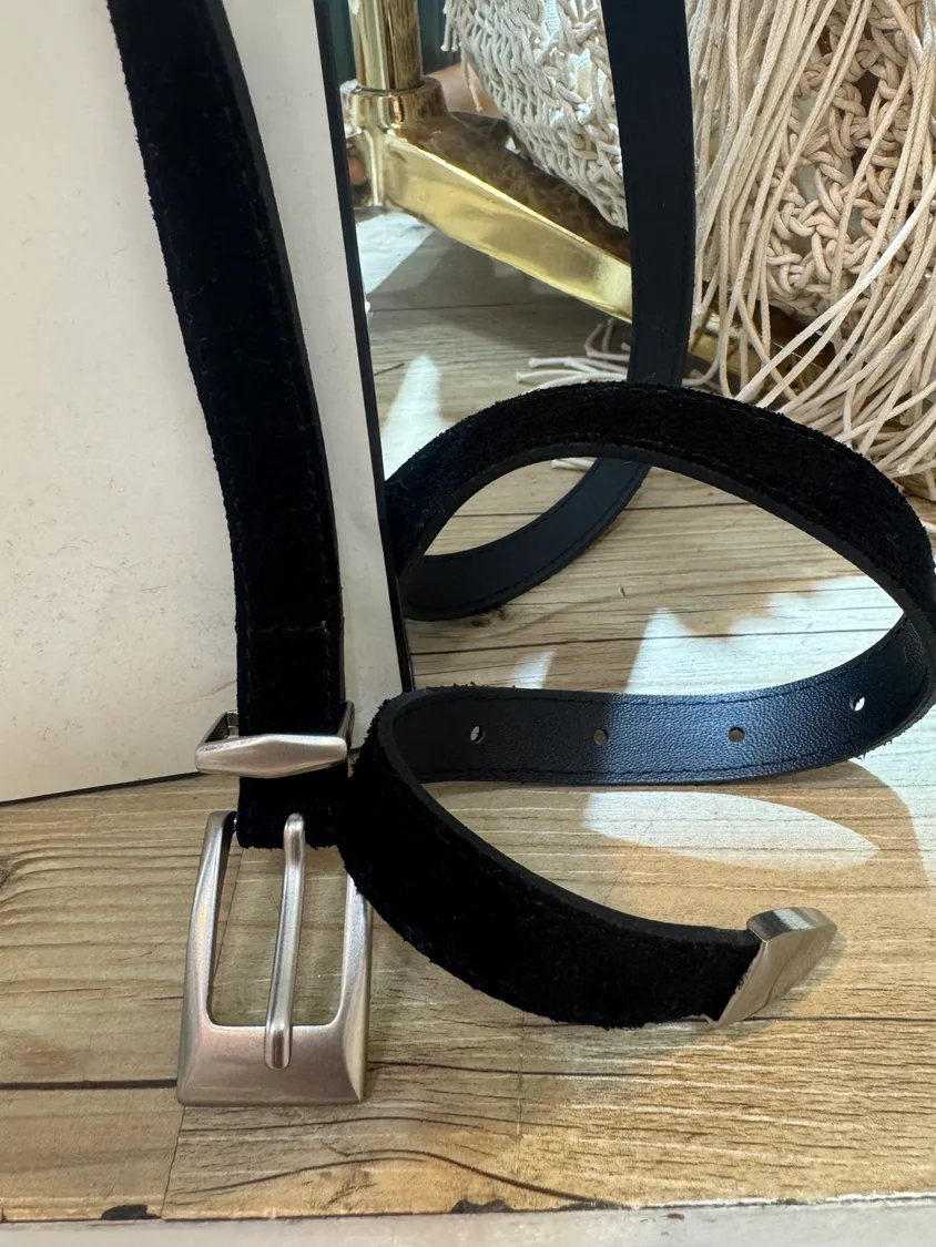 牛麂皮銀框腰帶