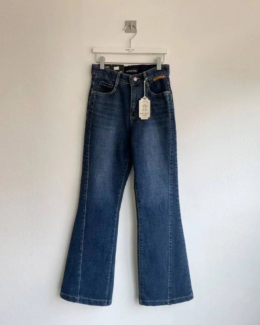 刷薄絨多切線拼接牛仔褲