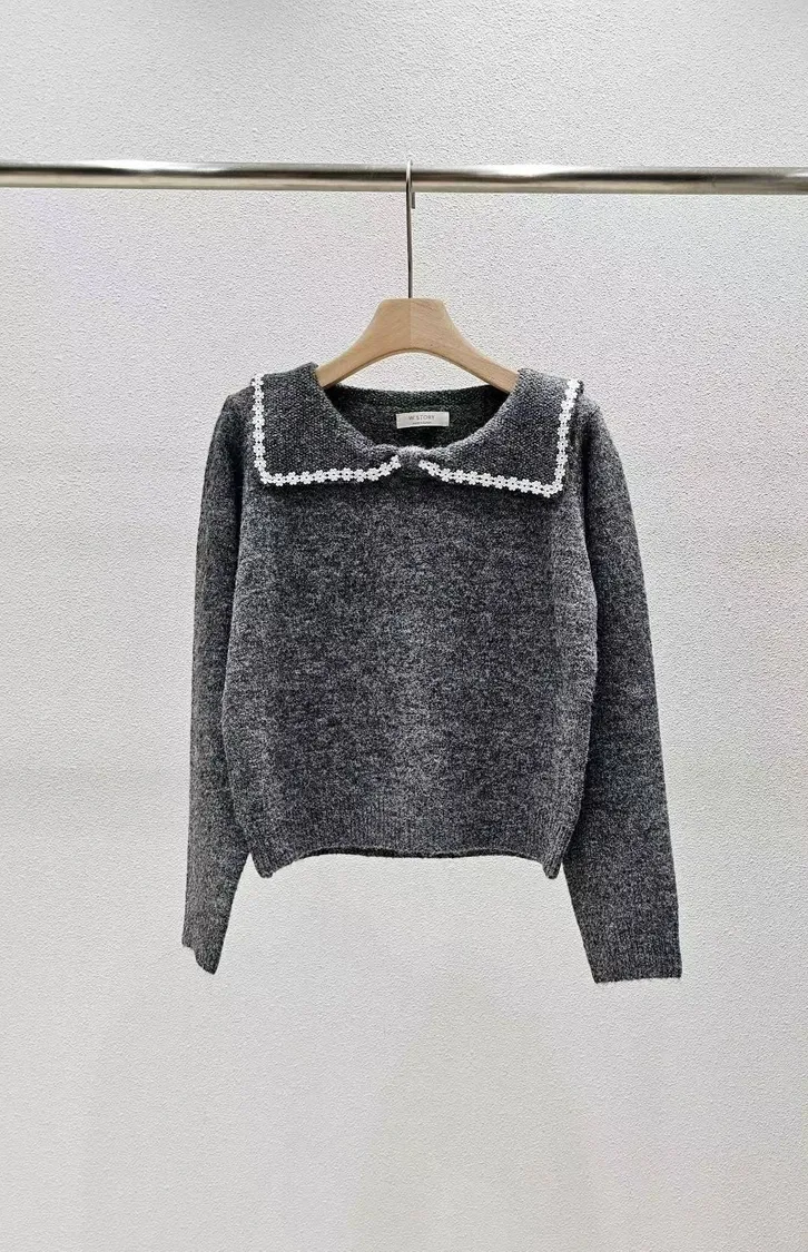 蕾絲滾邊方領針織上衣