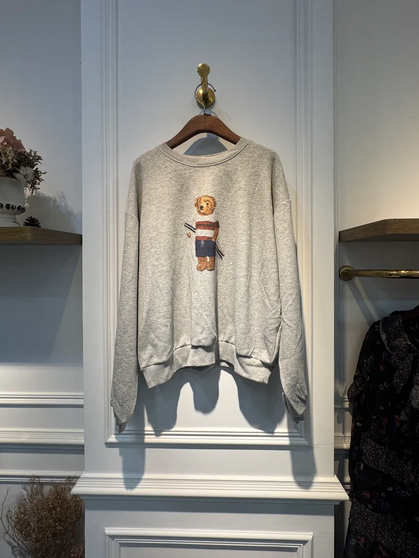 寬鬆大學熊圓領棉衣
