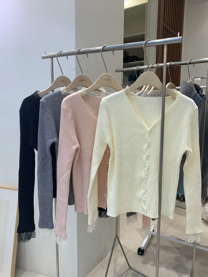 交叉設計感珍珠直紋上衣