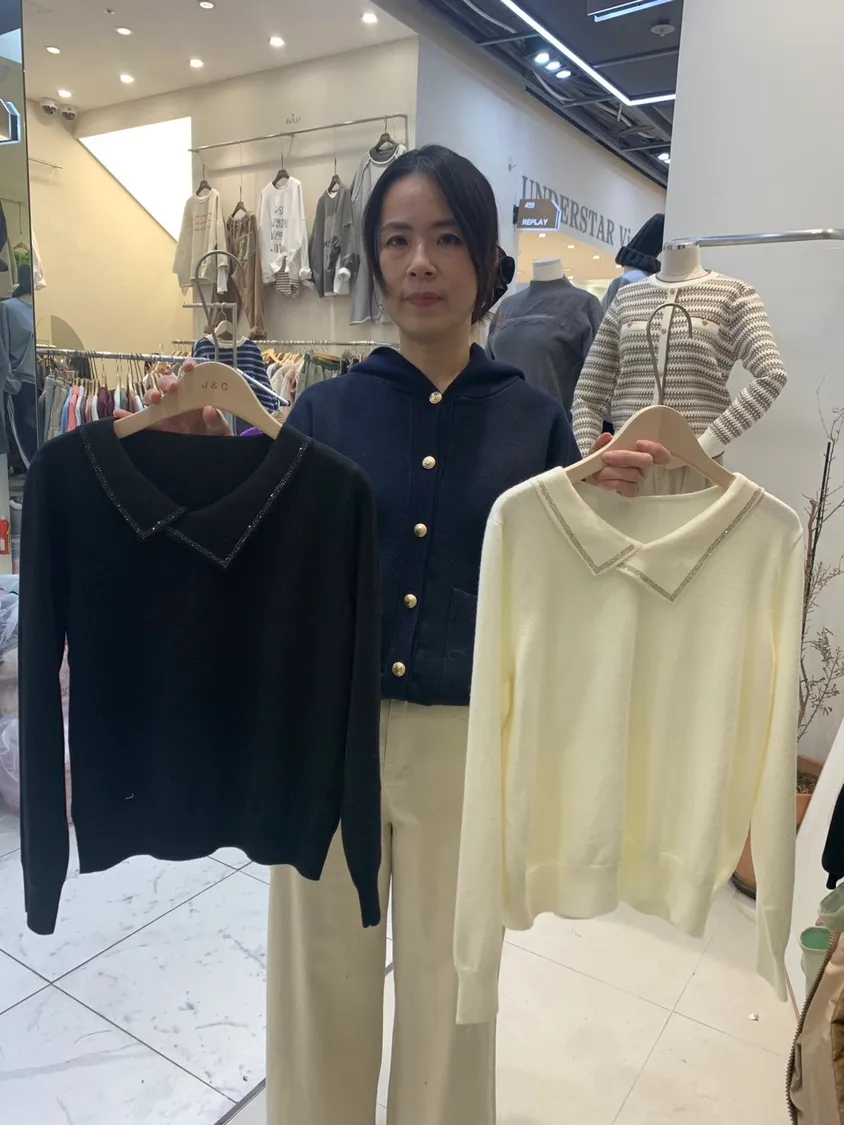 設計款翻領閃鑽素面上衣