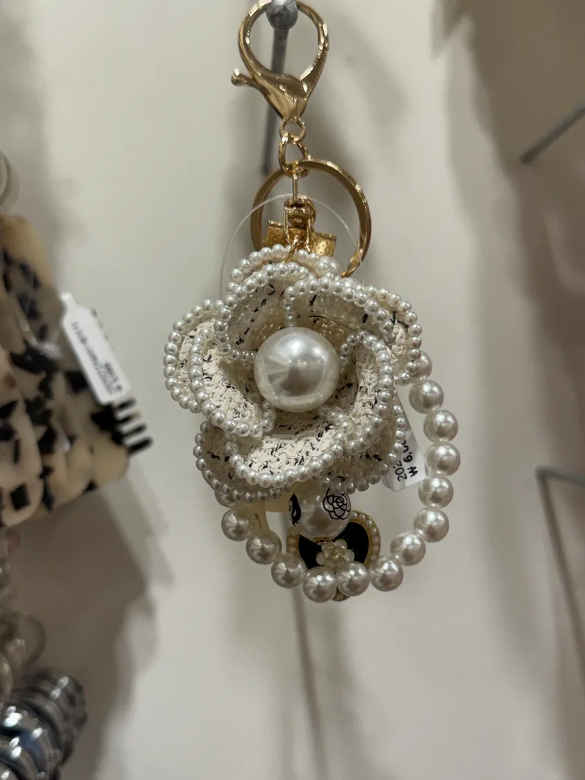 精緻毛呢珍珠山茶花串珠鑰匙圈