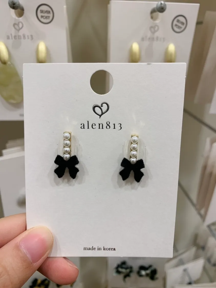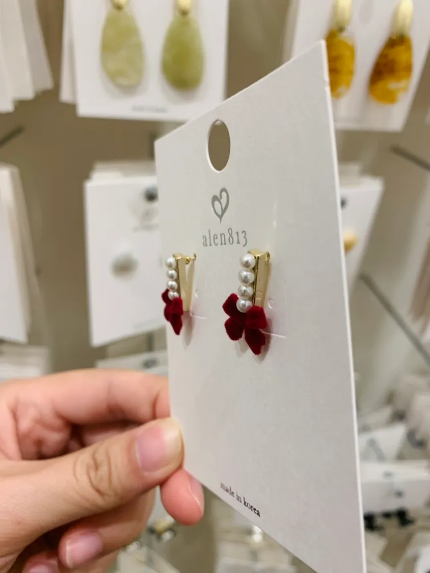 精緻短絨珍珠蝴蝶結耳飾
