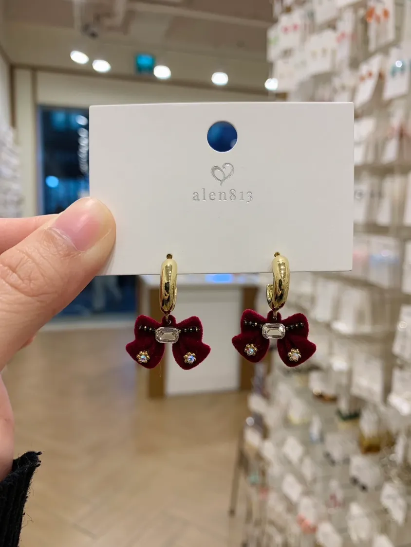 精緻短絨鑲鑽蝴蝶結金耳飾