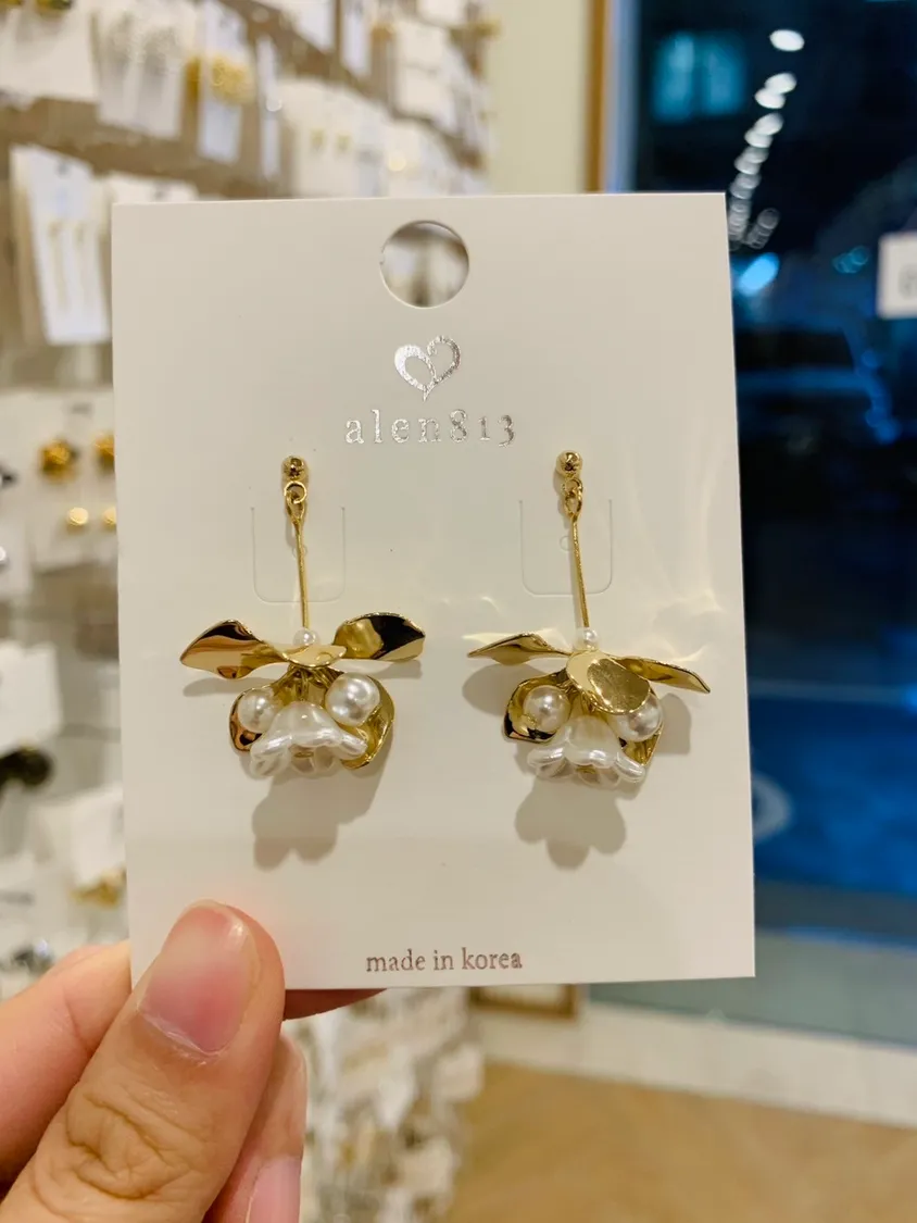 立體垂墜感中型金飾花朵耳飾