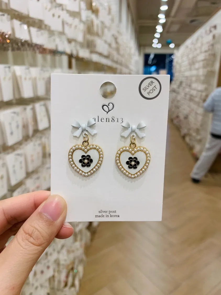 精緻蝴蝶結小香珍珠愛心款耳飾(銀針)