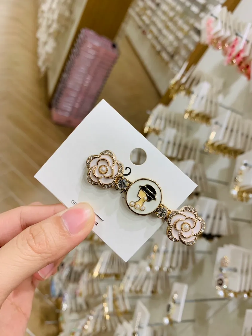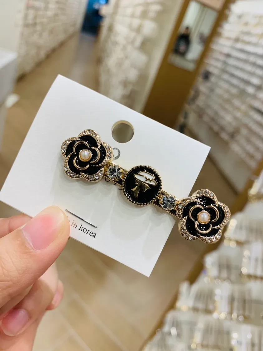 精緻小香風圓形雙花鑲鑽髮夾