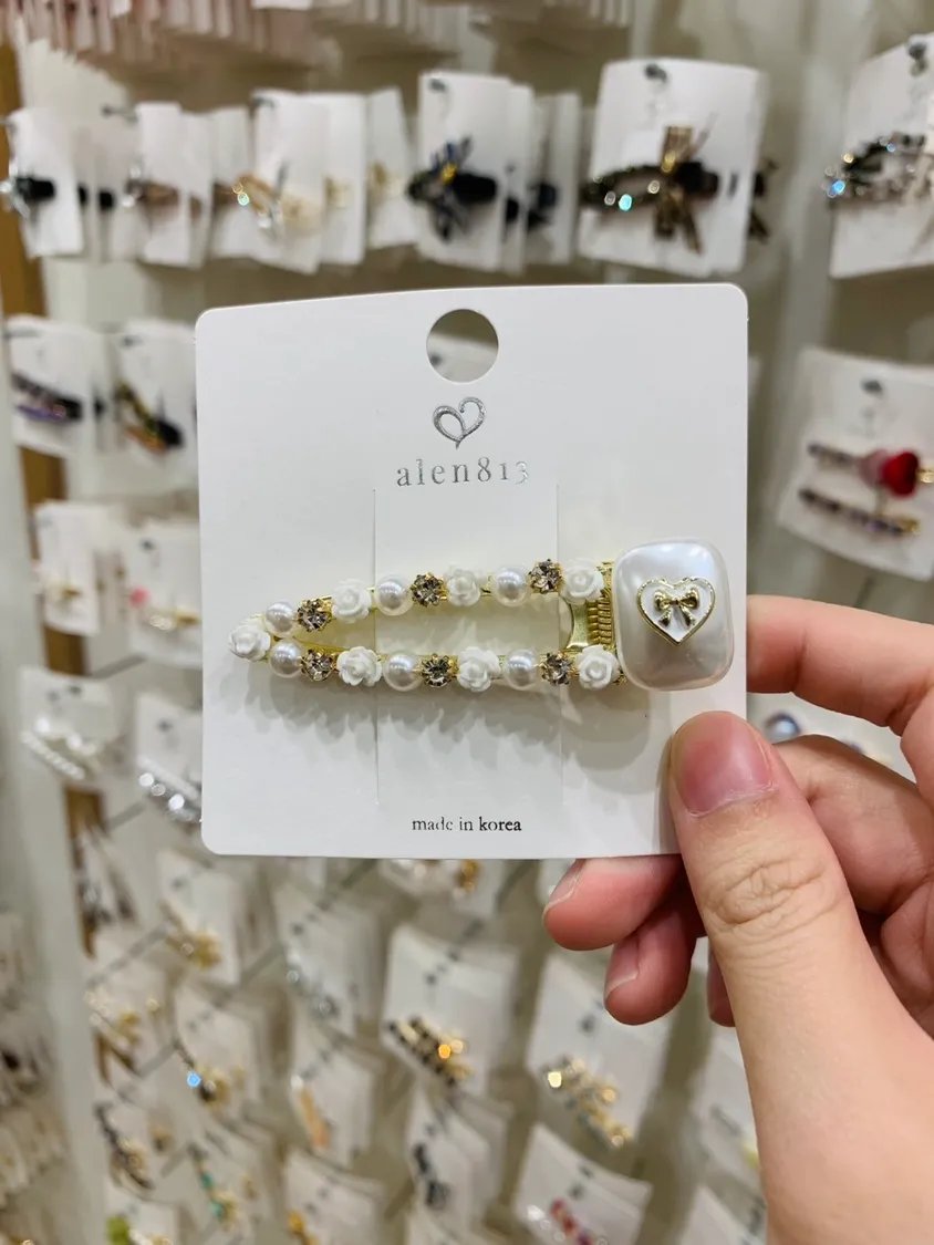 重工精緻款小花鑲鑽中款髮夾