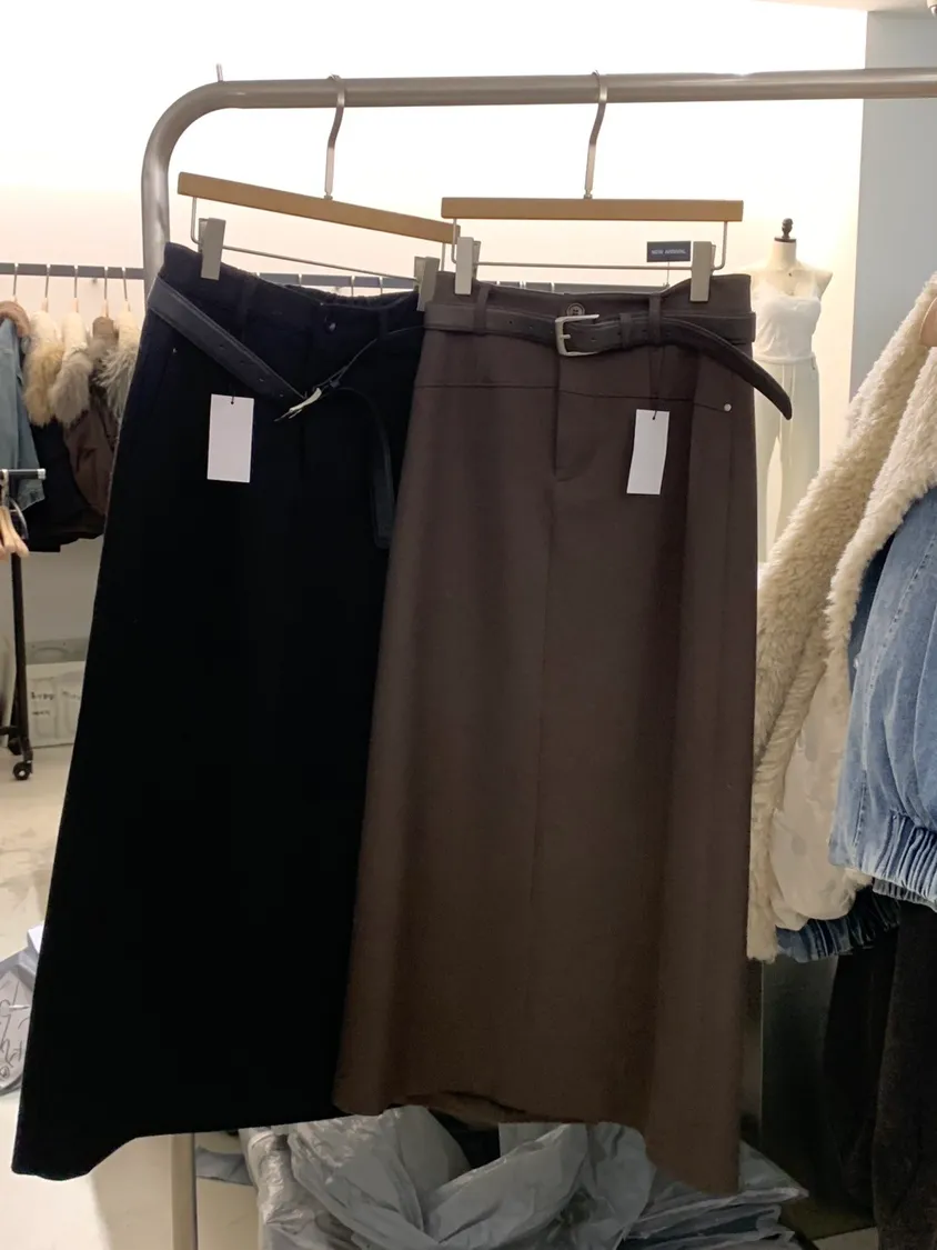 日常百搭直筒毛料長裙(5%羊毛