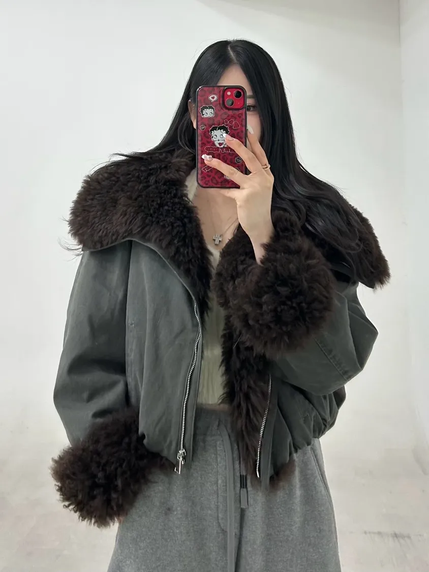 毛絨圍圈羽絨外套(100%鵝絨)