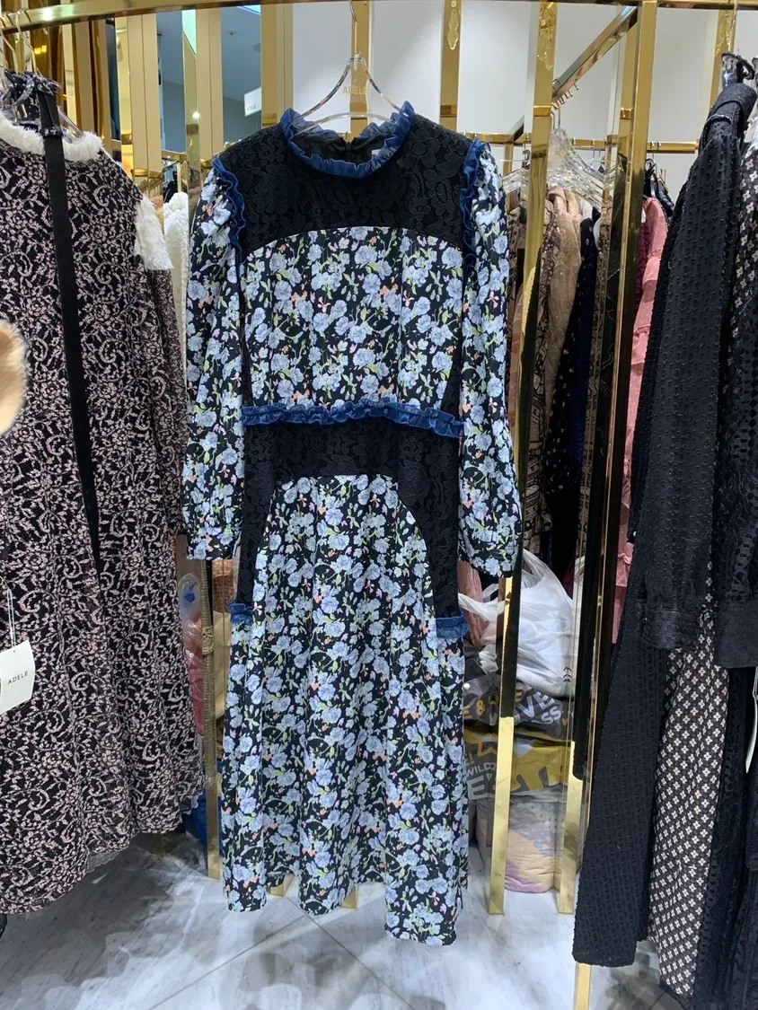 暗系布蕾絲拼接款花卉長洋