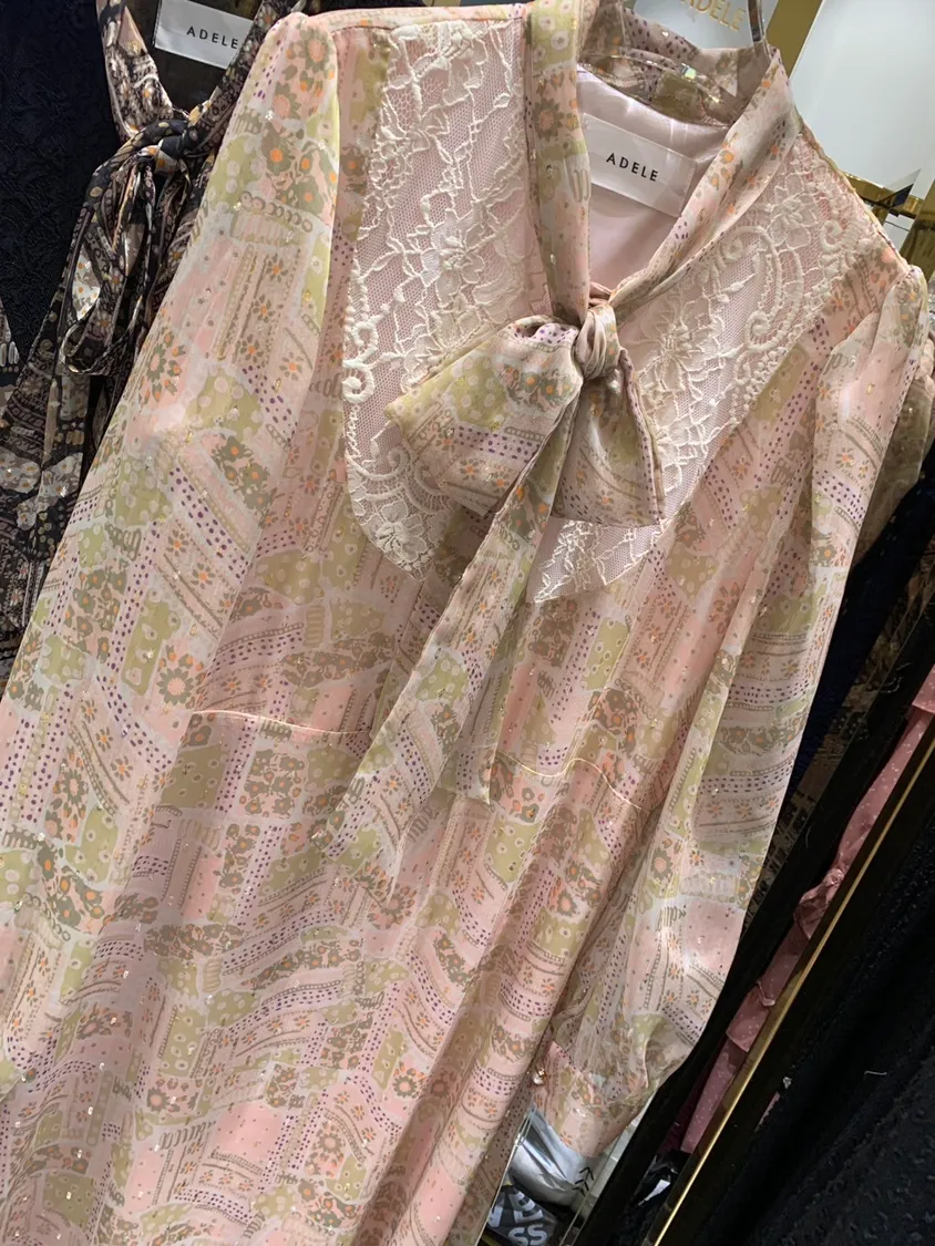 羅馬花卉圖騰款蕾絲拼接長洋