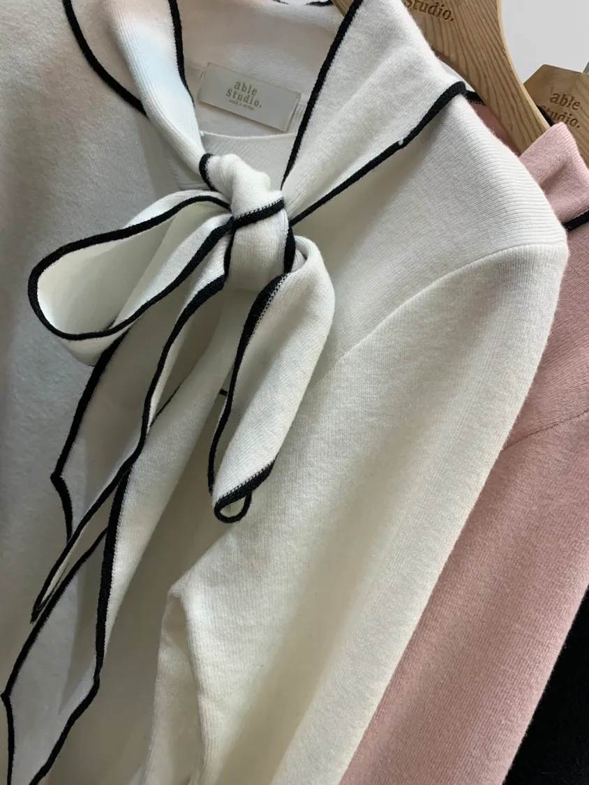 蝴蝶結款素雅款彈性上衣