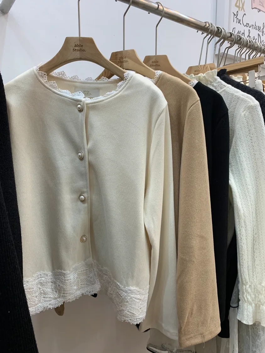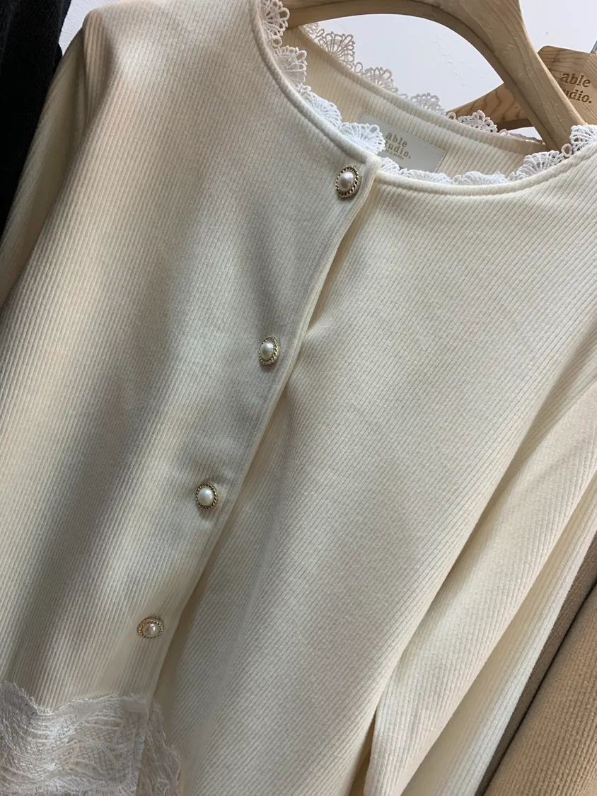 蕾絲拼接款直紋上衣