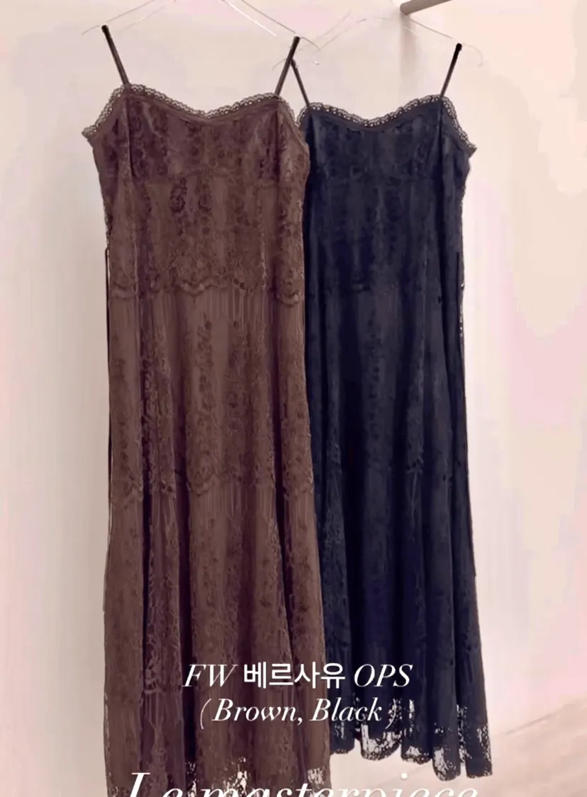 119(高級歐式滿版蕾絲修身細肩帶長洋)