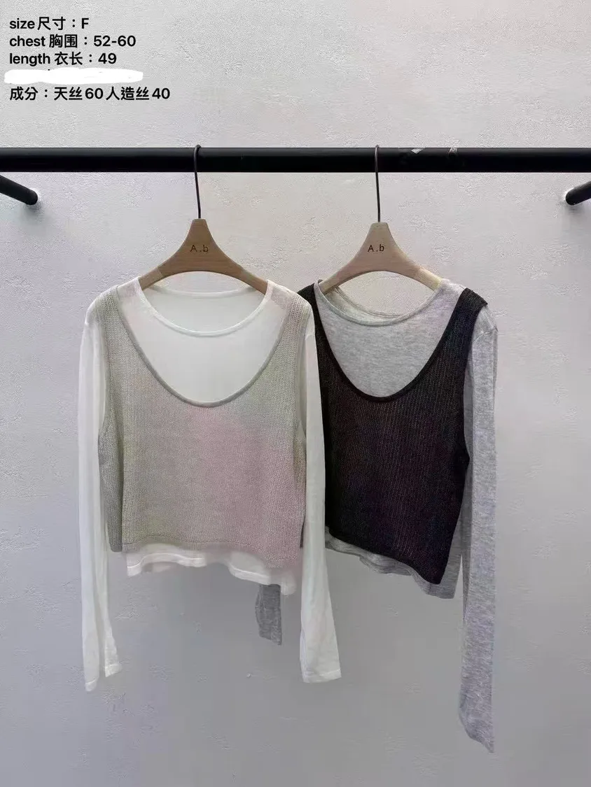 假兩件背心雙色薄款上衣