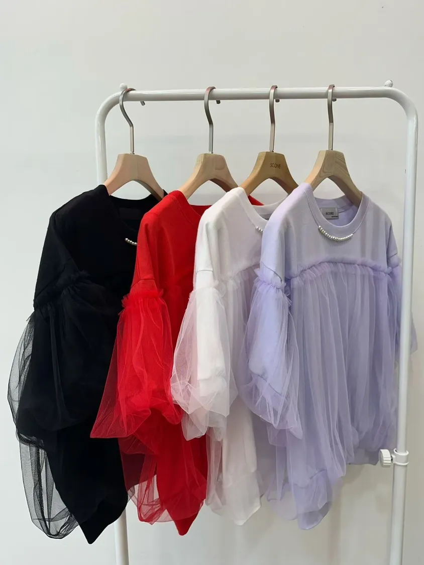 夏紗捲慕珍珠設計款上衣