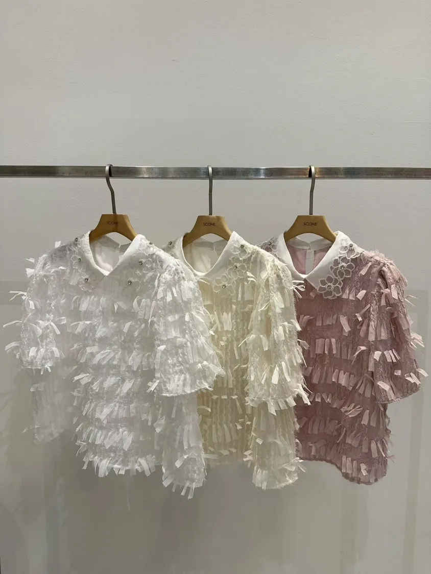 法式立體浪漫散花翻領上衣(亮絲線🌟