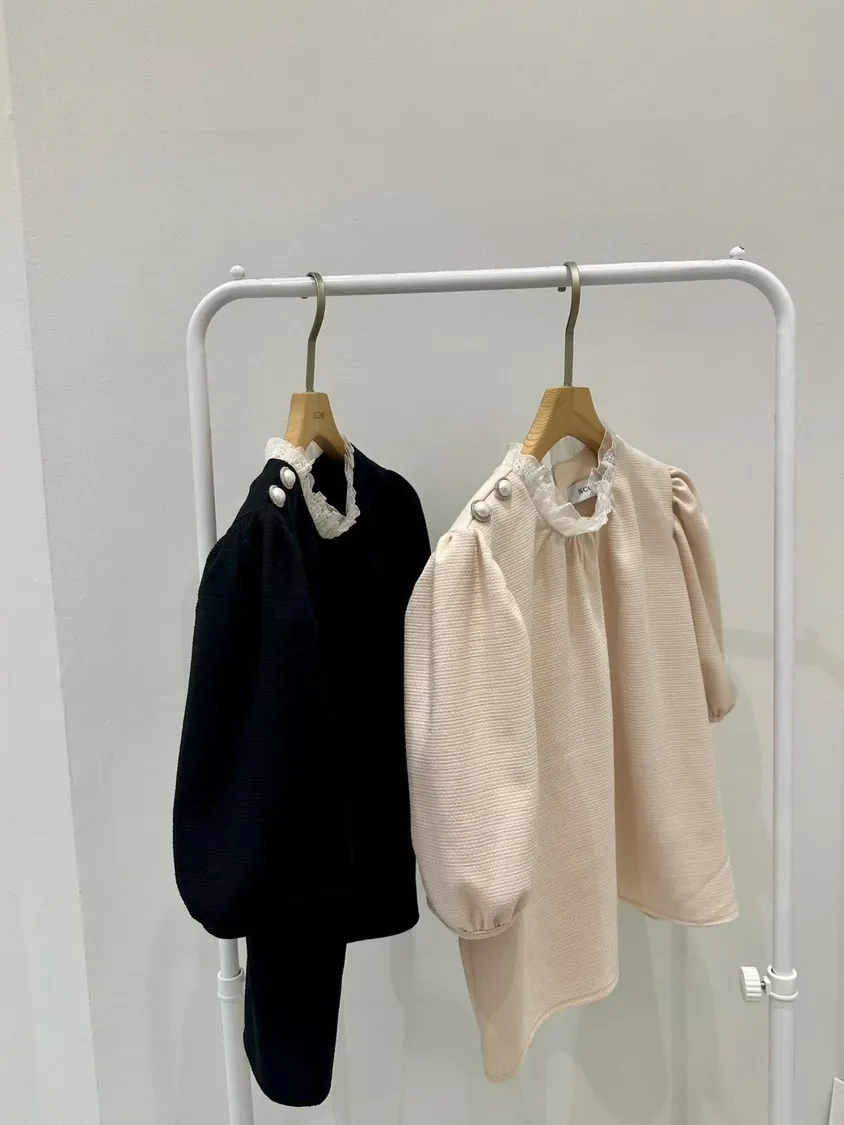 雙珠摺皺垂墜式拼紗上衣