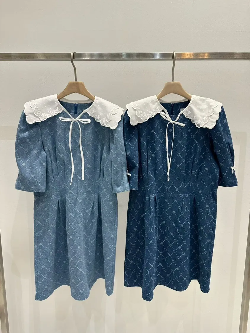 星痕菱格收腰蕾絲白領短洋(領片可拆)