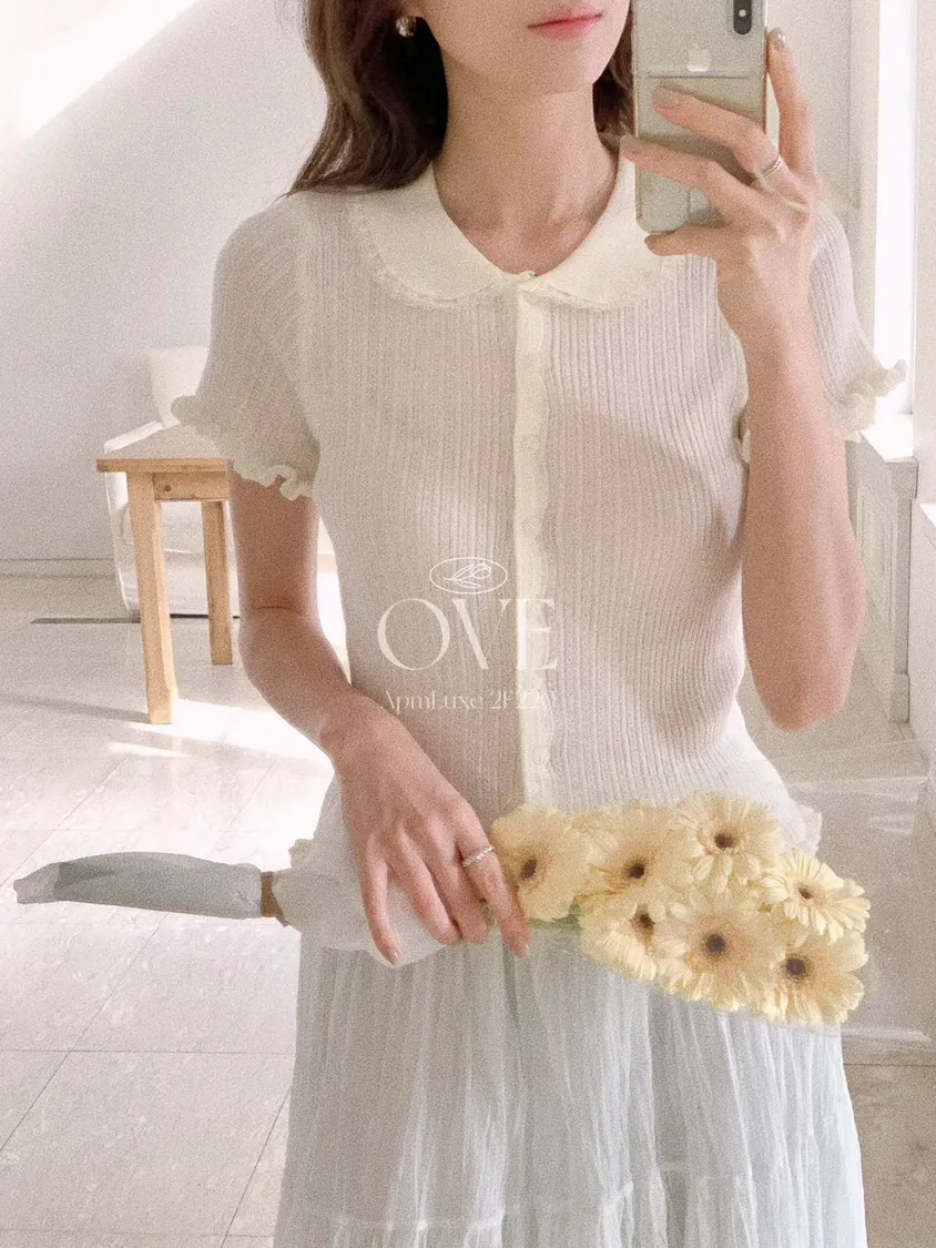 氣質款直紋波浪翻領上衣
