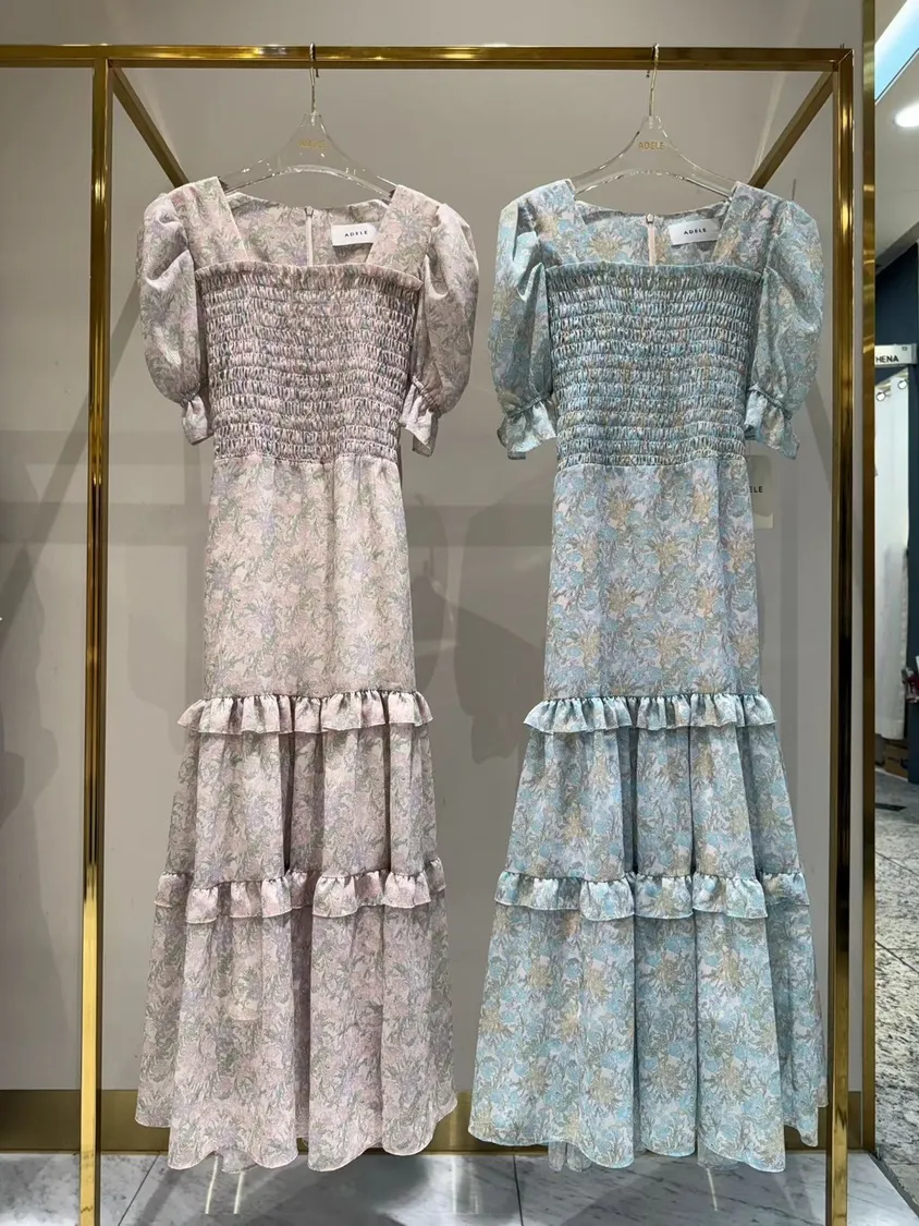 歐式淡雅宮廷風蛋糕裙長洋