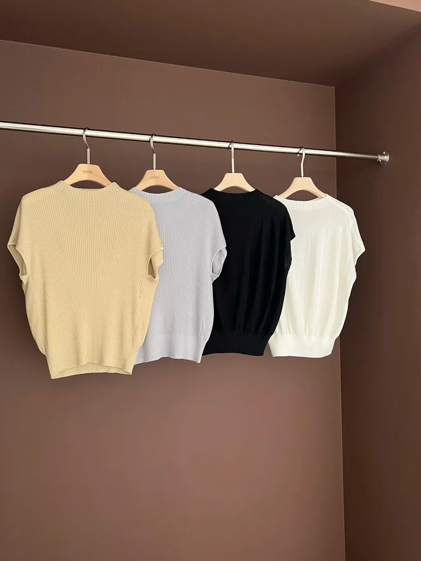 日系素色直紋圓領內搭上衣