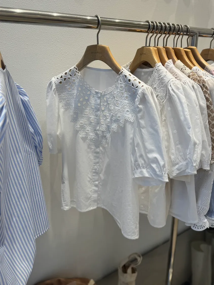 不規則菱格透膚蕾絲拼接上衣